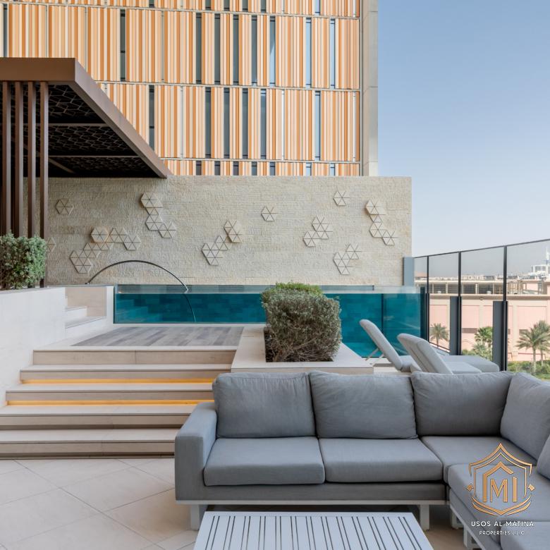 Stunning, fully furnished 3 bdr sky court with the palm view,Huge terrace, unique layout, duplex, private swimming pool.